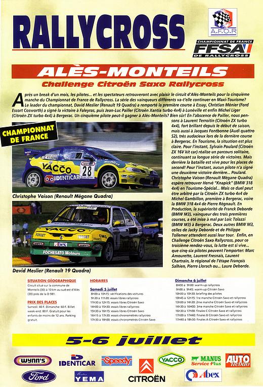 tour. Enfin, en Challenge Citroën Saxo Rallycross, pour ce troisième